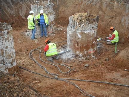 Es el paso previo al montaje de la estructura de cimentación profunda que se utiliza para la construcción de obras. Consiste en picar los restos de hormigón de baja calidad que tiene la parte superior o cabeza del pilote.
